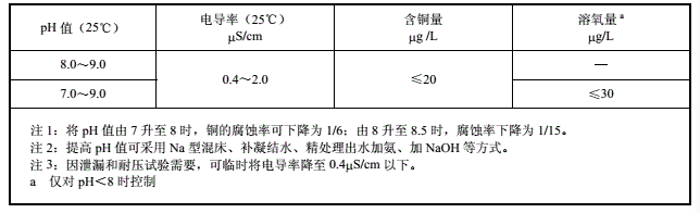 根據中華人民共和國電力行業標準《DL/T 801-2010 大型發電機內冷卻水質及系統技術要求》的中對于內冷卻水水質相關要求規定如下:
